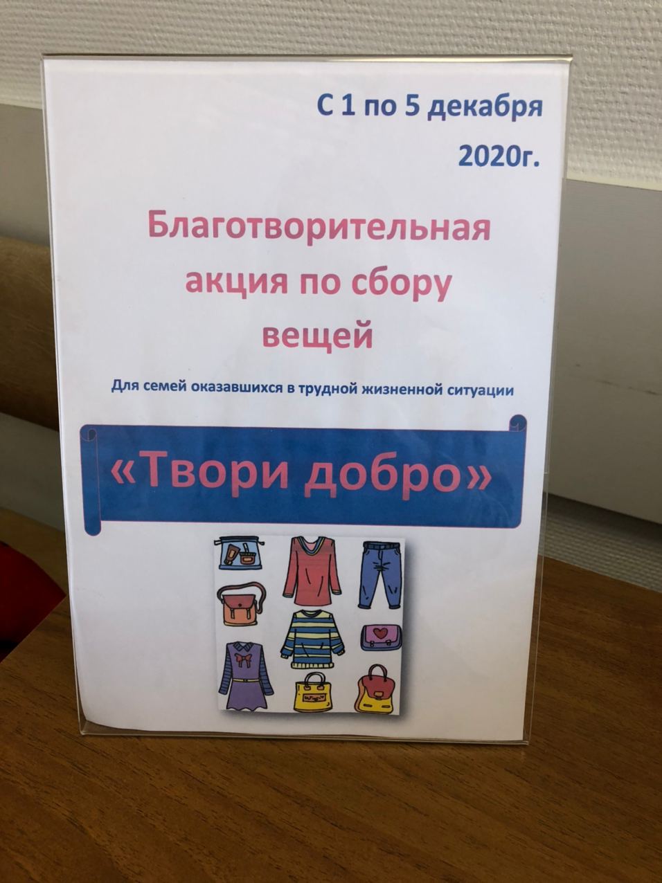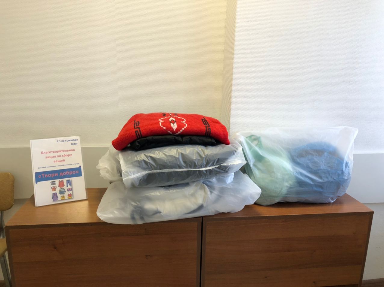 - Благотворительная акция «Твори добро» с целью оказания помощи семьям, попавшим в трудную жизненную ситуацию, собрала около 40 комплектов теплой одежды, повседневные вещи для взрослых и детей, нарядную и праздничную одежду, предметы обихода. В акции участвовали сотрудники структурного подразделения, родители и участники коллективов. Сбор вещей продолжается. Все собранное будет передано в Екатеринбургскую епархию для дальнейшей адресной передачи.