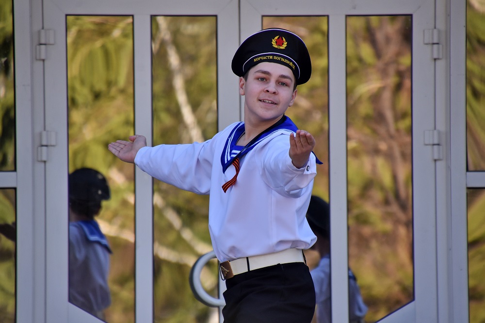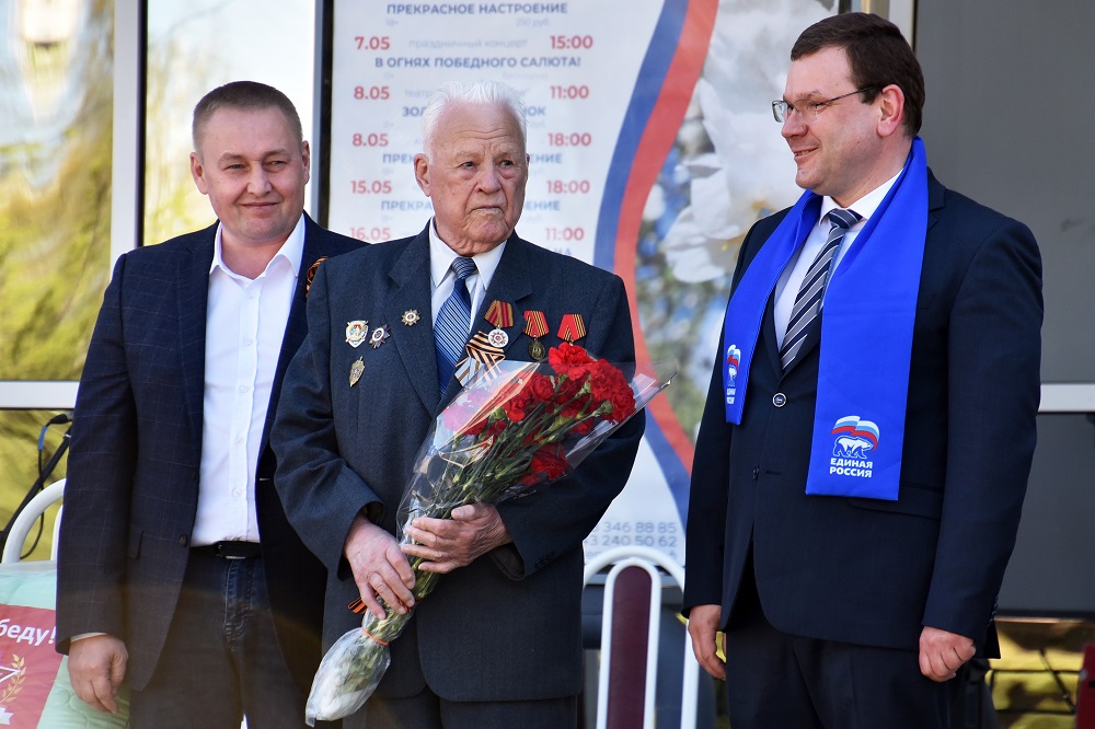 В установленное время ведущий Сергей Кокорин объявил начало мероприятия. Один за другим на сцену выходили юные артисты с творческими подарками жителям Ленинского района. Кстати, на празднике присутствовал ветеран Великой Отечественной войны Николай Васильевич Чудинов, который обратился к собравшимся с трогательным поздравлением и пожеланием мирного и чистого неба.