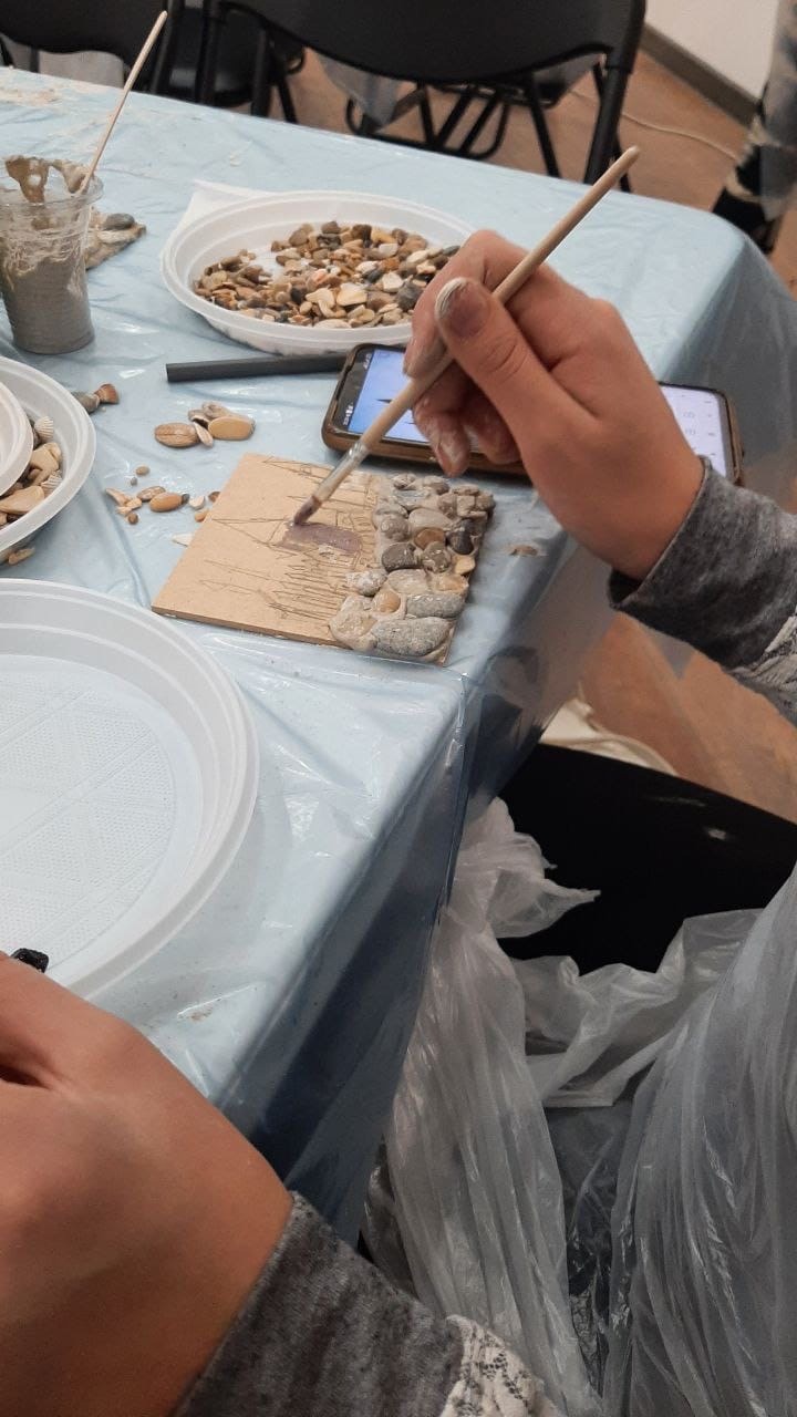 ⠀Для любителей создавать прекрасное своими руками были проведены 4 творческих мастер-класса по⠀работе с камнями.⠀Роспись гальки и создание⠀из этого же природного материала мозаики⠀настолько увлекало гостей⠀разных возрастов, что никто не торопился покидать стены уютного и гостеприимного Арт пространства. ⠀