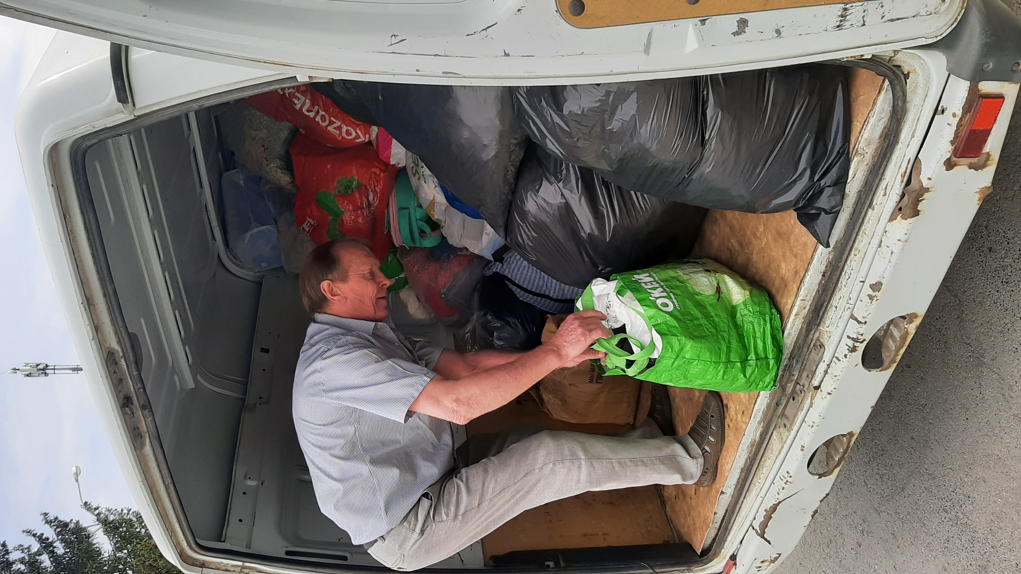 4 мая дружным коллективом загрузили машину пакетами и коробками с собранными вещами первой необходимости.