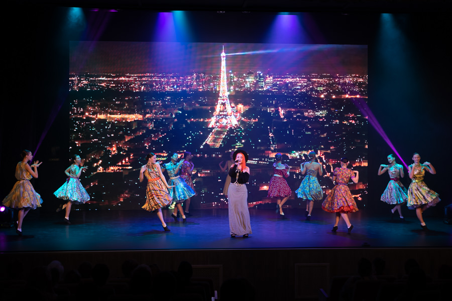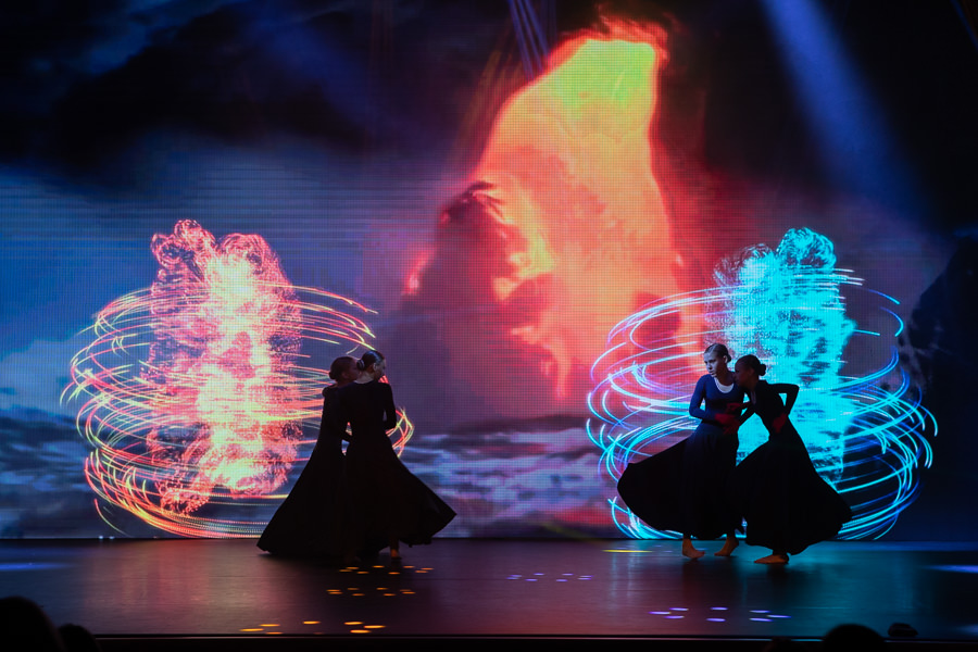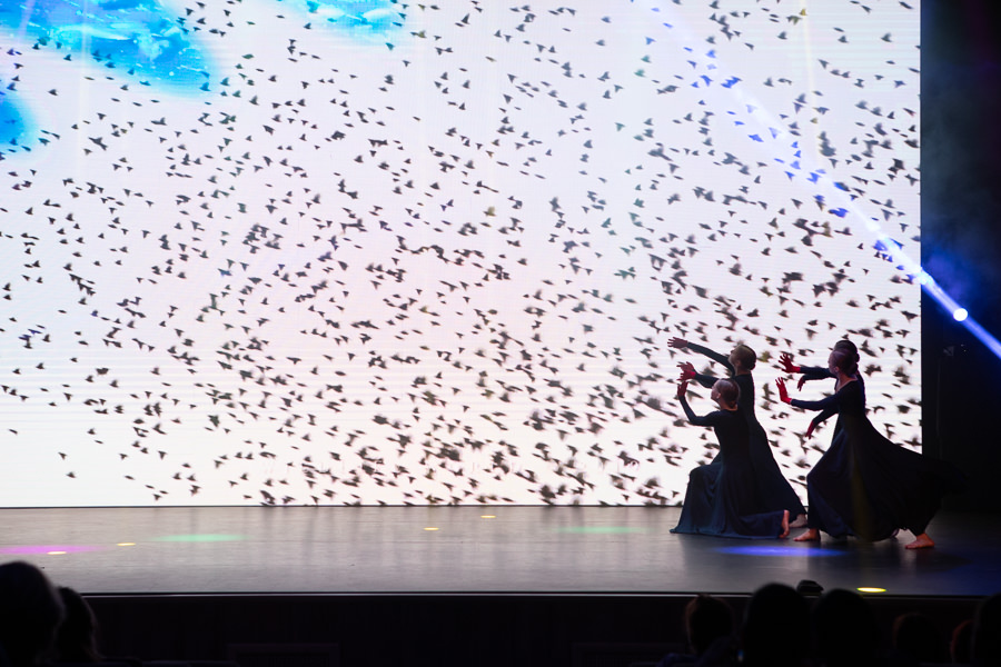 Большой зал оснащен новейшим сценическим оборудованием: светодиодный экран 9 м х 5 м, световое и звуковое оборудование.